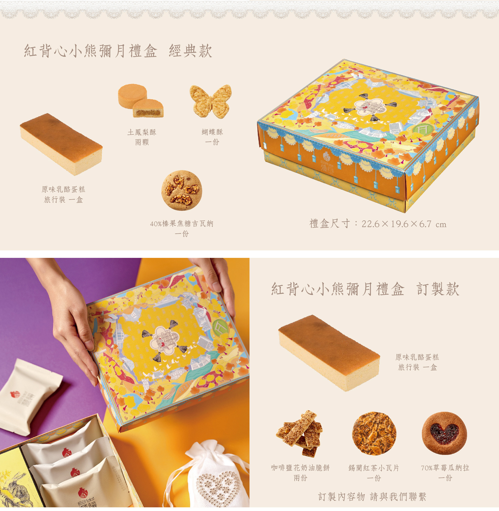 此款禮盒採接單生產,請於送禮日20天前下訂,禮盒起訂20盒。訂購請洽日出喜餅Line客服(@patisserie_tw)。